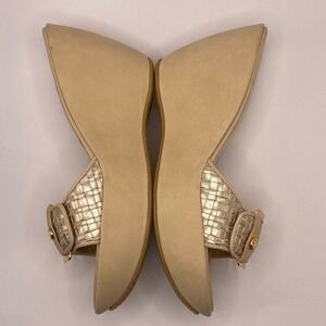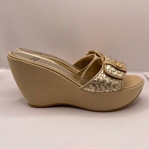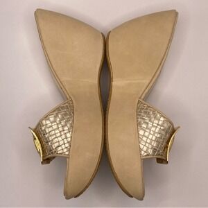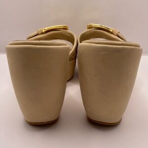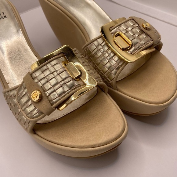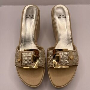 Stuart Weitzman Shoes Womens Size 8.5 Beige Gold Wedge Sandals Slides Buckle