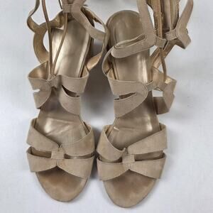 Stuart Weitzman Shoes Womens Size 8.5 Beige Suede Gladiator Lace Up Block Heel