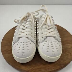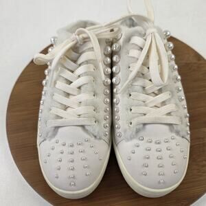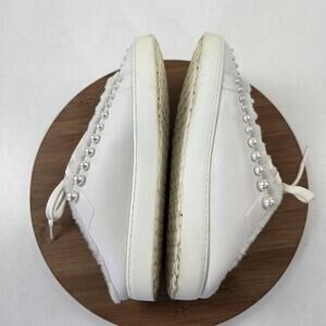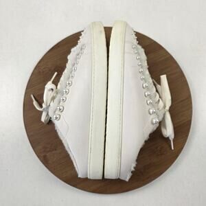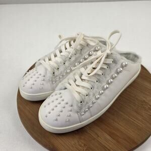 Stuart Weitzman Shoes Womens Size 9 White Pearl Studded Faux Fur Mule Sneakers