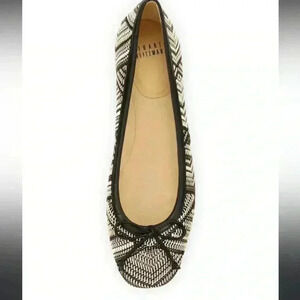 Stuart Weitzman Shoestring Woven Ballerina Flat, Black/White, size 8