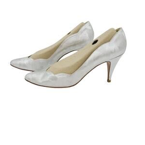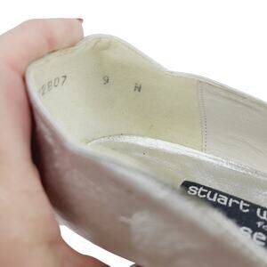 Stuart Weitzman Ladies silver shimmery brocade design Evening, Special Occasion/Bridal Pump.