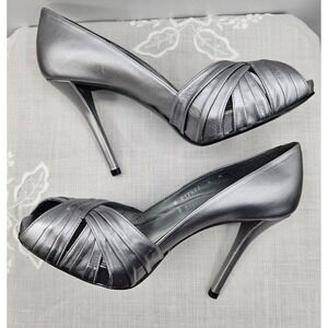 Stuart Weitzman Silver Leather Peep Toe High Heel Pumps Party Wedding Shoes