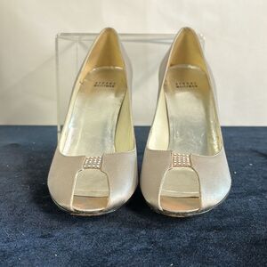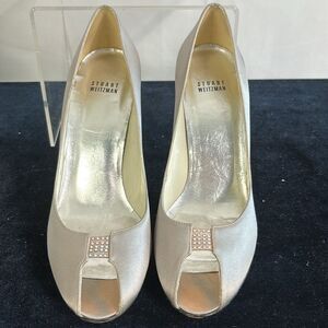 Stuart Weitzman Silver w Beaded Heel Peeptoe Heels