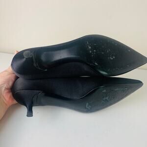 Stuart Weitzman Size 10 Poco Black Satin Pumps Kitten Heels Pointed Toe Classic