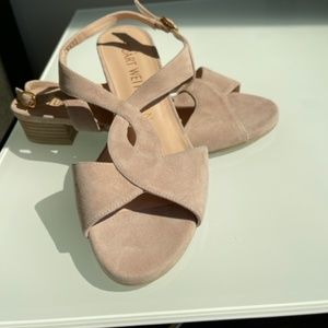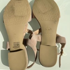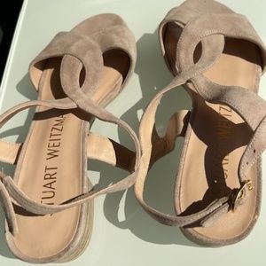 Super comfortable size 7 Stuart Weitzman 1" heel suede sandals. In excellent used condition. Worn once. Light pink is the color this season:) Very neutral.