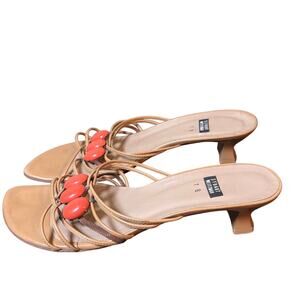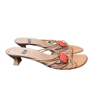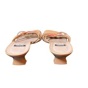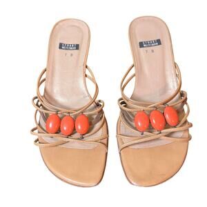 Stuart Weitzman Size 7 Tan Strappy Jeweled Kitten Heel Slide Sandals