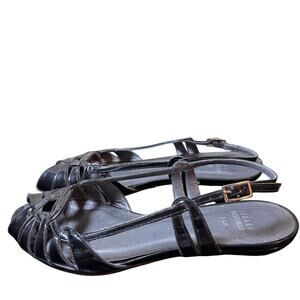 Stuart Weitzman Size 7.5 Black Patent Leather Strappy Open Toe Sling Back Flats