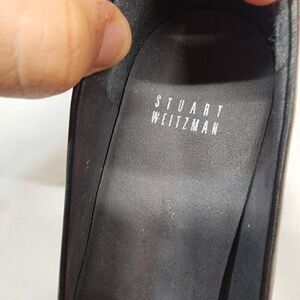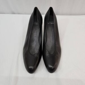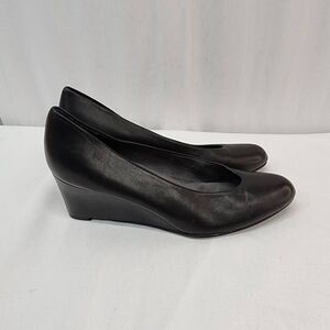 Stuart Weitzman Size 8 Black Leather Women's Wedge Slip On Almond Toe Heel Pumps