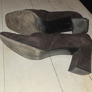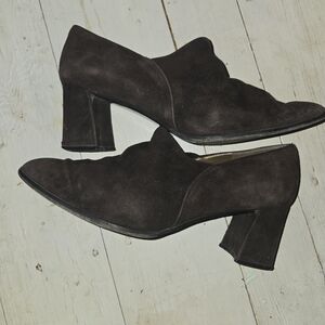 Stuart Weitzman Size 8 Dark Brown Suede Chunky Block 2.5" Heel GUC Fall Wedding