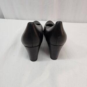 Stuart Weitzman Size 8 Black Leather Women's Wedge Slip On Almond Toe Heel Pumps