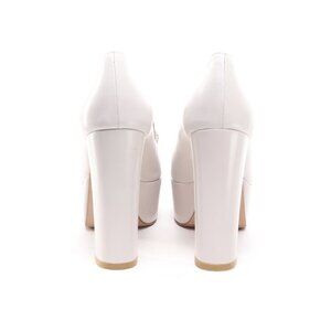 Stuart Weitzman Sky-High Tassel Heels Leather Platforms Women 6 White/Silver