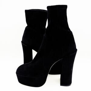 Stuart Weitzman Skyhigh 145 Platform Booties US 10 Black Stretch Suede NWOB