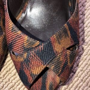 These shoes are SO Gorgeous..and I'm not sure the pics do them justice. Stuart Weitzman Merino Wool Uppers are in pristine condition and rich moody autumn colors - a navy that's so black I'm not sure it isn't, copper, rust...all the FALL 🍁 COLORS! Stacked 5" heel with a subtle curve. Really really pretty and rare.