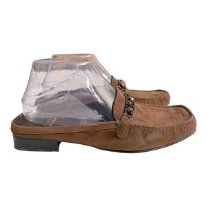 Stuart Weitzman Slip-On Loafers Brown Suede with Gem Embellishment size 8W