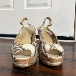 Stuart Weitzman Snake Embossed Leather Sling Back Wedge Heeled Sandals size 11