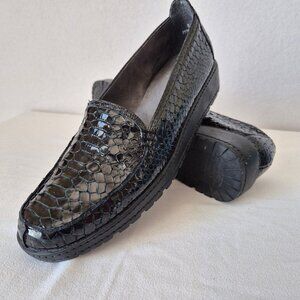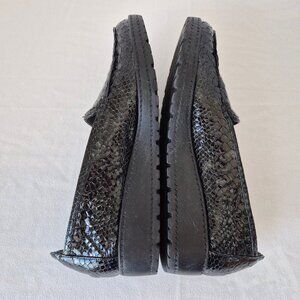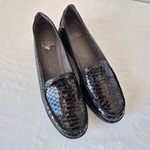 Stuart Weitzman Snake Embossed Patent Leather Wedge Slip Comfort Shoe Black