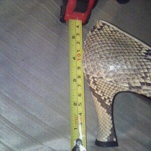 Heels are by Stuart Weitzman, size 7.5. In great condition. A little wear on the bottom as shown in pictures. Colors are cream, gray, and black. Flattering V front, has an awesome shape to the style. They are narrower towards the front with a round pointed toe. Made in Spain.