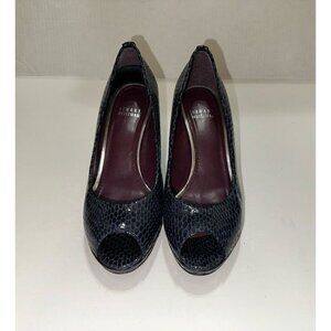 Stuart Weitzman Snake Print Embossed Peeptoe Heels in Dark Gray Size 7.0