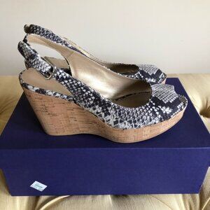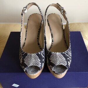 Stuart Weitzman Snake Skin Patterned Wedge Sandals, Size 6, Like New