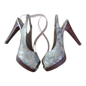 Stuart Weitzman Snakeskin Peep Toe Slingback Wood Platform pump heels
