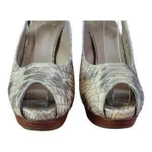 Stuart Weitzman Snakeskin Peep Toe Slingback Wood Platform 5" Pump Heels Sz 7.5
