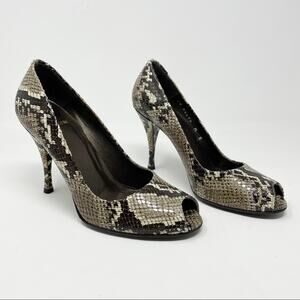 Stuart Weitzman Snakeskin Python Leather Peep Toe High Heels Shoes Black Tan 6