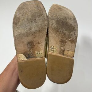 Stuart Weitzman Sofia gold knotted slip on sandals size 6. Good condition.See all pics for minor wear.No box