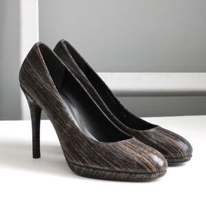 Stuart Weitzman Soft Leather Platform Black Brown Heels Pumps Round Toe Size 8.5