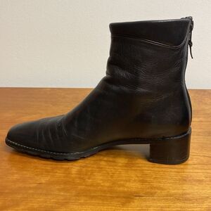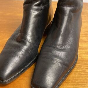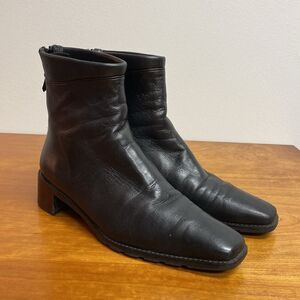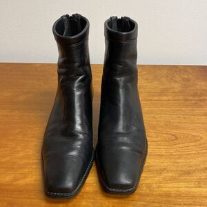Stuart Weitzman Soft Leather Zip Back Ankle Boots Square Toe Black Size 5.5