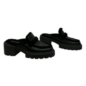 Stuart Weitzman Soho Chill Suede Shearling Loafer Mule Black 9.5B Platform