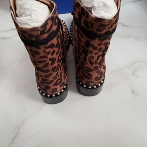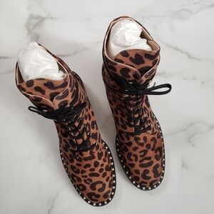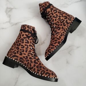 Stuart Weitzman Sondra Faux Pearl Cheetah Leopard Combat Boots