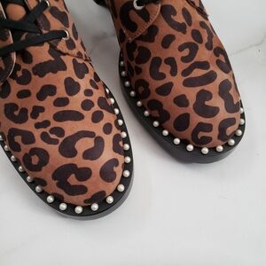Stuart Weitzman Sondra Faux Pearl Cheetah Leopard Combat Boots Sz 7.5