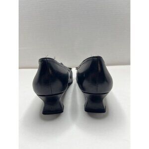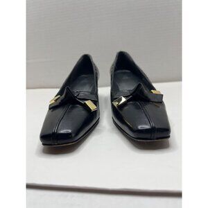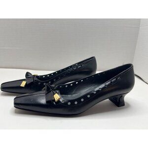 Stuart Weitzman Square Toe Leather Kitten Heel Bow Shoes Pump Size 6.5 Black