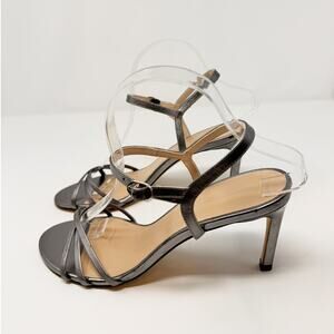 Stuart Weitzman Starla 80 Ankle Strap Leather Heel Gunmetal Gray Silver US 8