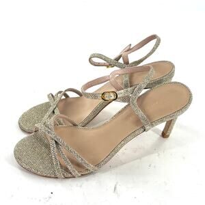 Stuart Weitzman Starla 80 Heels 6 NWOT Sandals Gold Sparkle Ankle Strap Sandals