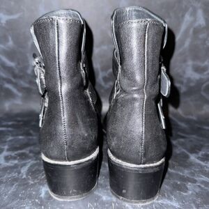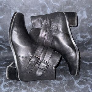 Stuart Weitzman Strapduo Moto Black Leather Heeled Booties Boots Women Size 8.5M