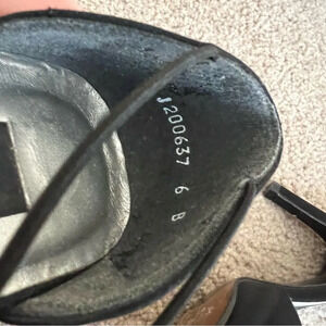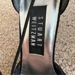 Stuart Weitzman Black Heels. in good used condition with some wear on the bottom and a small nick in the one heel. there is also a bit of sticky stuff stuck to the inside back of the heels because they had a “heel protector” insert that i removed