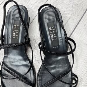 Stuart Weitzman Strappy Sandals Black Patent Leather Heels Sz 9.5B
