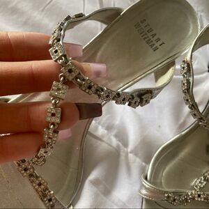 Stuart Weitzman Strappy Silver Chain Kitten Heels