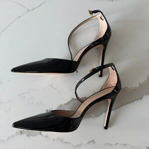 Stuart Weitzman's Stuart 100 pumps are crafted of shiny leather
