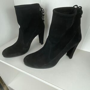 Stuart Weitzman Suede Ankle Tie Boots 8 Black
