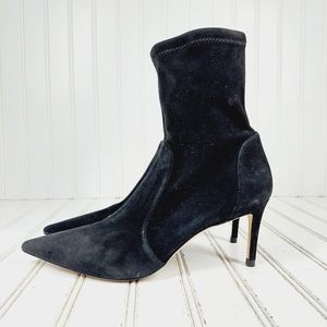 The pictures don’t do these justice because they look almost new and barely worn. 85 Stretch SUEDE Pointed-Toe Black High heeled Ankle boot. Gorgeous classic Weitzman sock bootie style. Size 7.5. Any questions please feel free to ask. NOT THE ROW Happy Poshing!