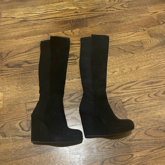 Stuart Weitzman Suede Black Over The Knee Wedge Boots