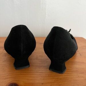 Stuart Weitzman Suede Bow Kitten Square Toe Heels