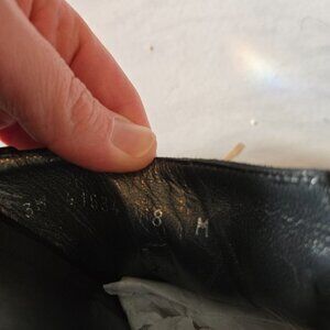 Stuart Weitzman suede slip on heels. These are black with buckle detailing. They have some damage on the heels that can be seen in the photos. They are a size 8M and the heel measures 4".