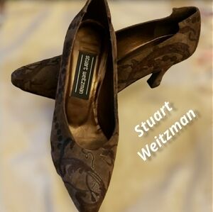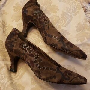 Pretty Stuart Weitzman Suede Floral Embossed Heels VGUC