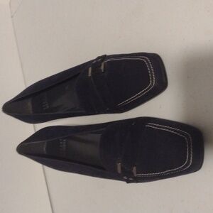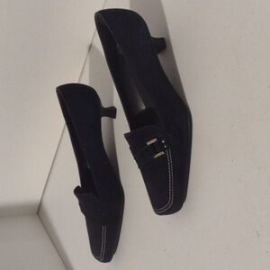 Stuart Weitzman Suede Square Toe Kitten Heel Loafers, Size 8