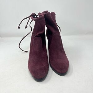Stuart Weitzman Suede Sock Ankle Boots Booties Pull On Tie Back Burgundy Women 7