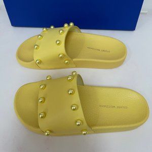 Stuart Weitzman Superstud Beaded Pool Slide Sandals in Lemon Color Size 5B NEW