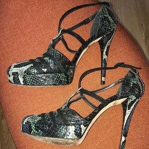 Stuart Weitzman Sz 10 Green Snakeskin High Heels